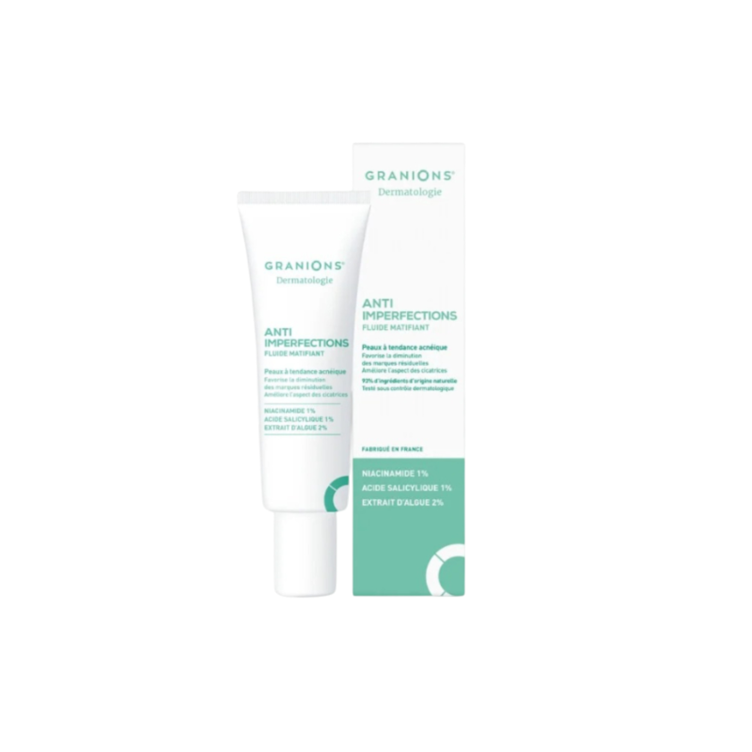 Apply this care to the entire face, morning or evening, after cleansing your skin with the Anti-Imperfection Facial Cleanser. It is not recommended for pregnant or breastfeeding women. For maximum effectiveness, use it alongside other products from Granions Dermatology’s Anti-Imperfection range.