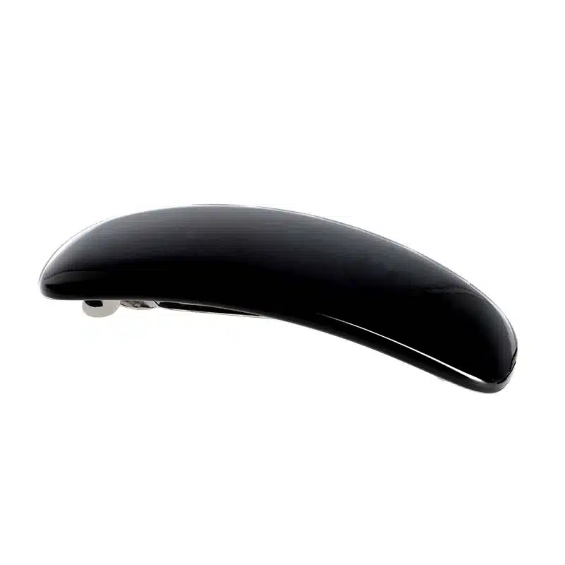 Elegant hair barrette designed with an anti-slip mechanism to hold hair securely in place all day. Available in classic Brown (Tortoise) and Black finishes.