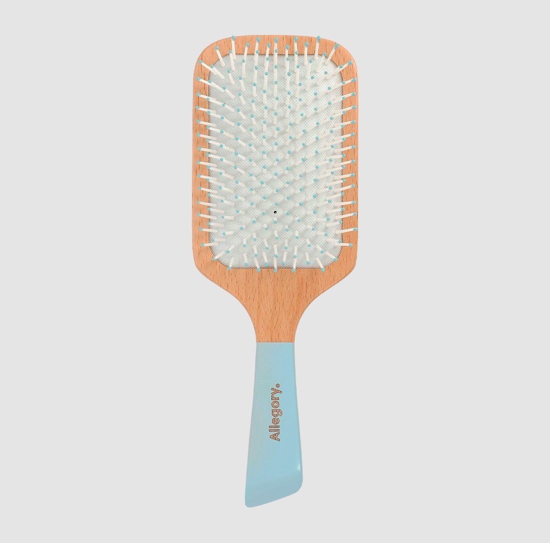 Robust blue hair brush specifically designed for thick or voluminous hair. Detangles effectively without pulling.