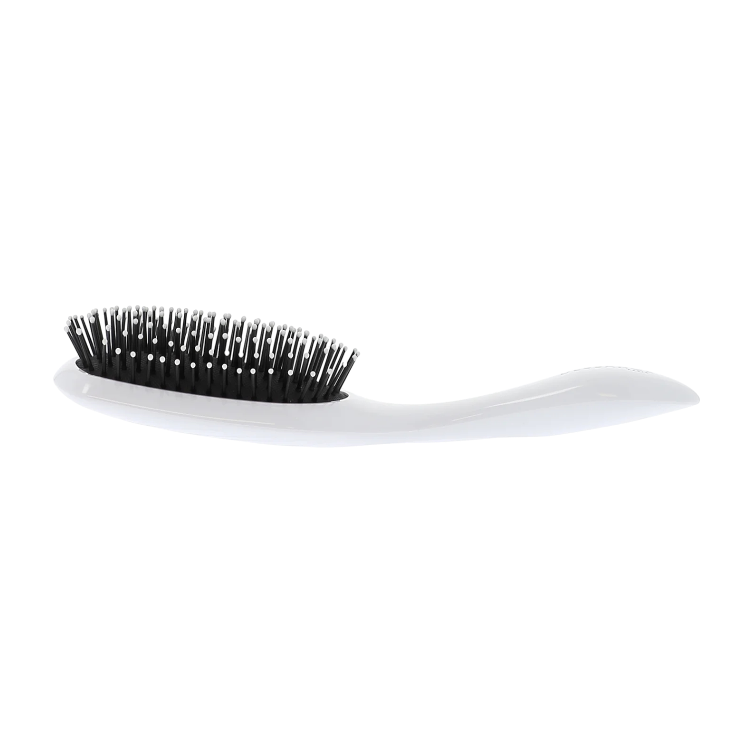 Engineered with a compact head for improved maneuverability around the crown and nape. Ball‑ended nylon pins reduce static and help align hair shafts for a sleek finish. Ideal for pre‑styling and quick touch‑ups.