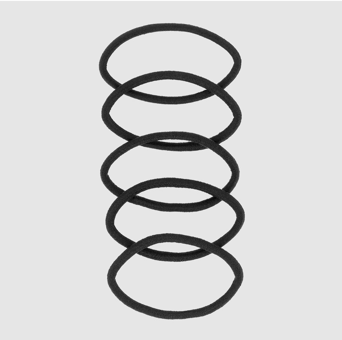 Set of 14 thick, metal-free hair elastics. Durable recycled material suitable for thick hair.