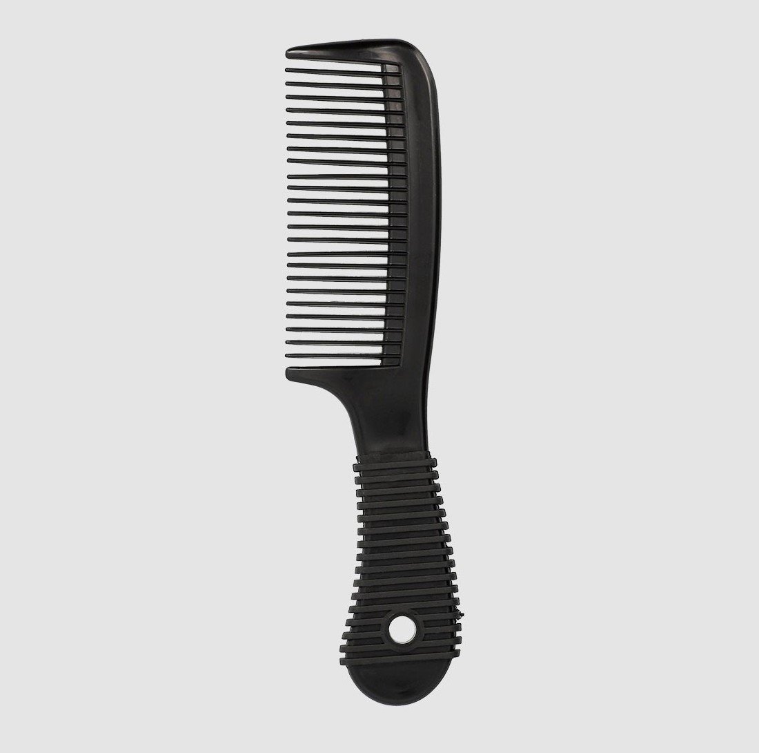 Eco-friendly hair comb made from 100% recycled materials. Features an anti-slip handle for better grip and control.