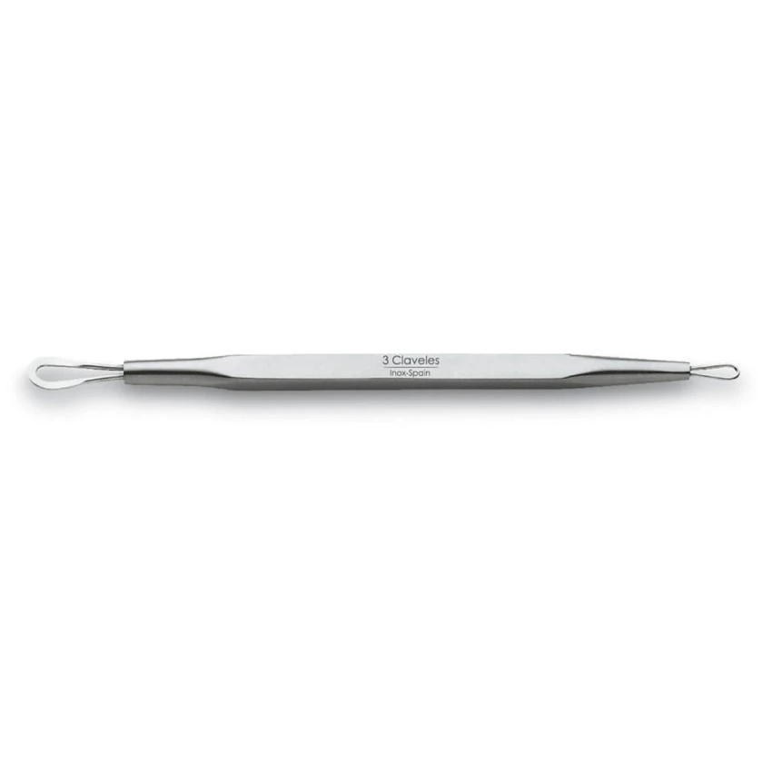 Professional tool for removing blackheads and pimples hygienically. Made of stainless steel with a double-loop design to apply even pressure without damaging the skin.