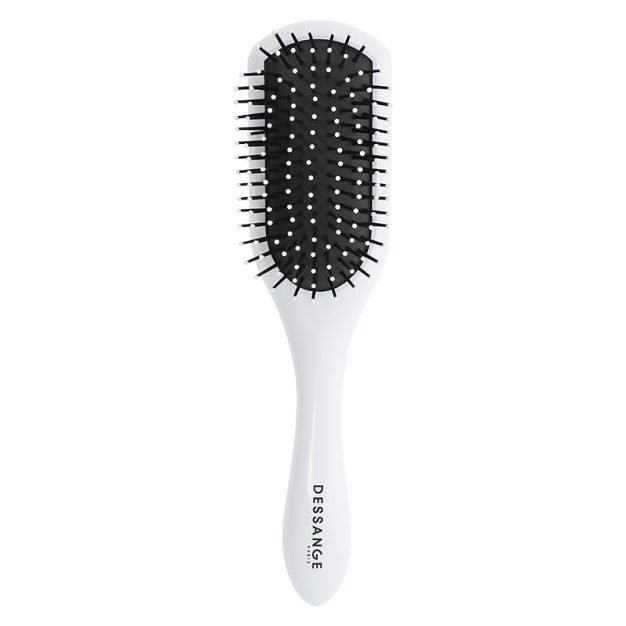 Classic rectangular hairbrush featuring a pneumatic cushion and nylon pins. Designed to gently detangle hair while massaging the scalp. Ideal for daily grooming of all hair lengths.