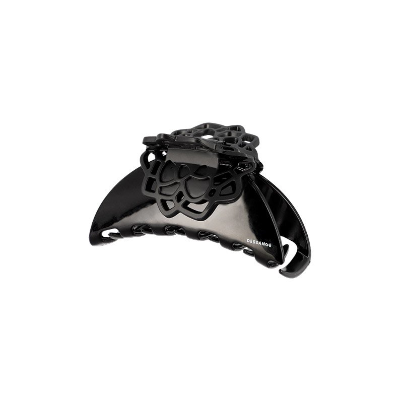 Classic 9cm hair clip adorned with a rosette pattern. Provides a secure hold for medium to thick hair. Available in Brown and Black.